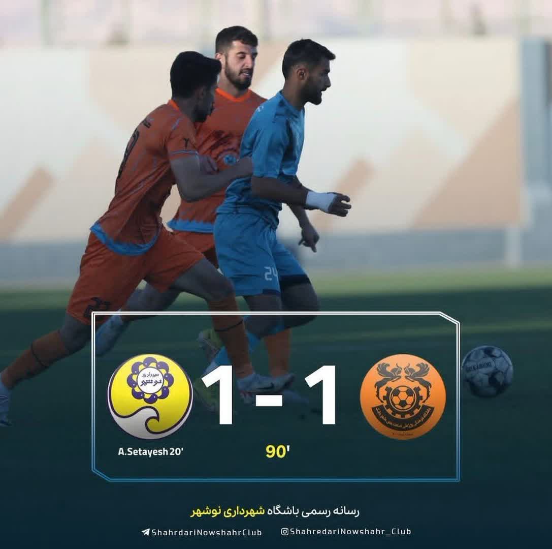 در روزى که شهردارى چى ها در هر ۲ نیمه مالک مطلق توپ و موقعیت هاى متعدد بودند، با برخورد ۲ بار موقعیت نوشهرى ها به تیر دروازه و با گل امیر ستایش شاگردان محمود فکرى با امتیاز میزبانى بازى را با نتیجه مساوى به پایان رساندند پایان بازى/ مس شهر بابک ۱ شهردارى نوشهر ۱