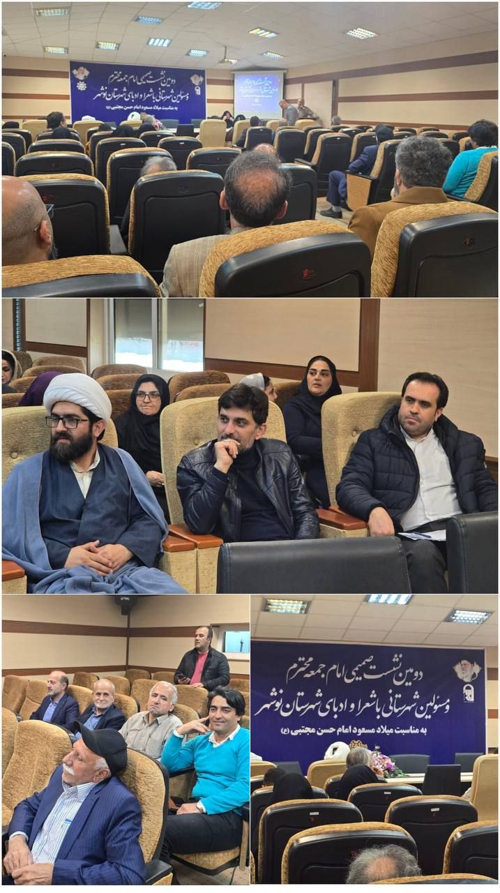 این برنامه با راهبری امام جمعه محترم شهرستان با هدف ایجاد زمینه مساعد آشنایی و همدلی بین انجمن های ادبی و شعرا با مسئولین، مصادف با سالروز ولادت حضرت امام حسن مجتبی(ع) در دو قالب اشعار فارسی و محلی و با حضور اهالی شعر و ادب فارسی و طبری، عادل خزائی شهردار و مهندس شاهمیر معاونت محترم شهرداری نوشهر،حاج آقا شمس دفتر امام جمعه و مدیریت محترم اداره تبلیغات اسلامی و سایر مدیران در سالن اجتماعات شهرداری نوشهر برگزار گردید.