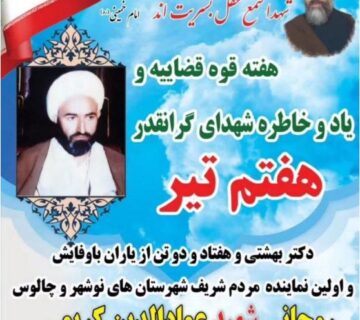 هفته قوه قضاییه و یاد و خاطره شهدای گرانقدر هفتم تیر گرامی بادNowshahr۷ تیر ۱۴۰۴ هفته قوه قضاییه و یاد و خاطره شهدای گرانقدر هفتم تیر دکتر بهشتی و هفتاد و دو تن از ... ادامه مطلب
